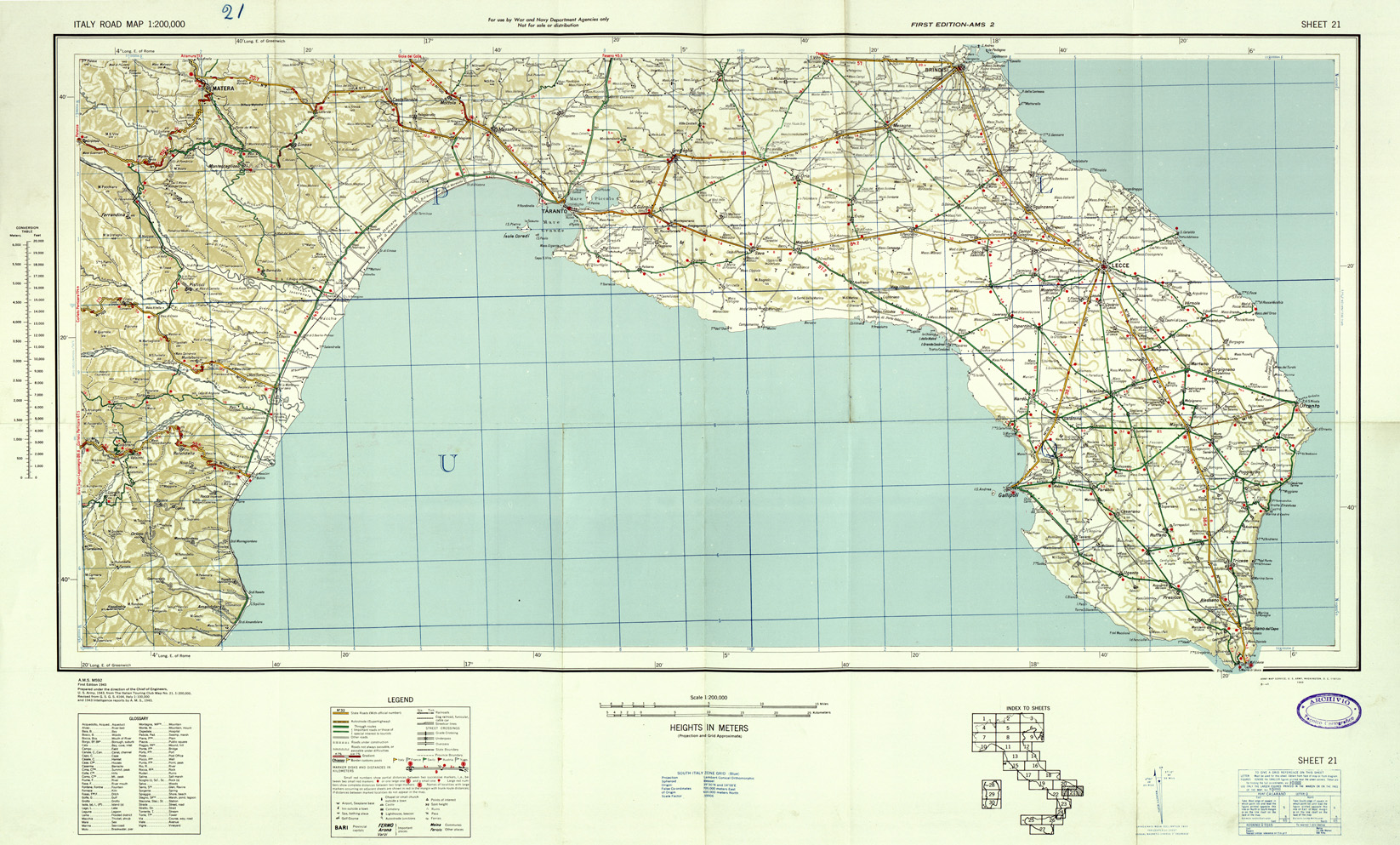 "Carta edita dall' Army Map Service Statunitense sulla base della Carta d' Italia al 200.000 del Touring Club Italiano."