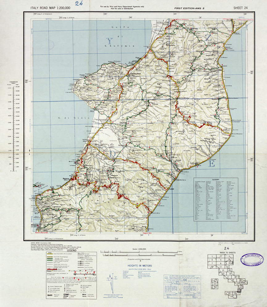 "Carta edita dall' Army Map Service Statunitense sulla base della Carta d' Italia al 200.000 del Touring Club Italiano."