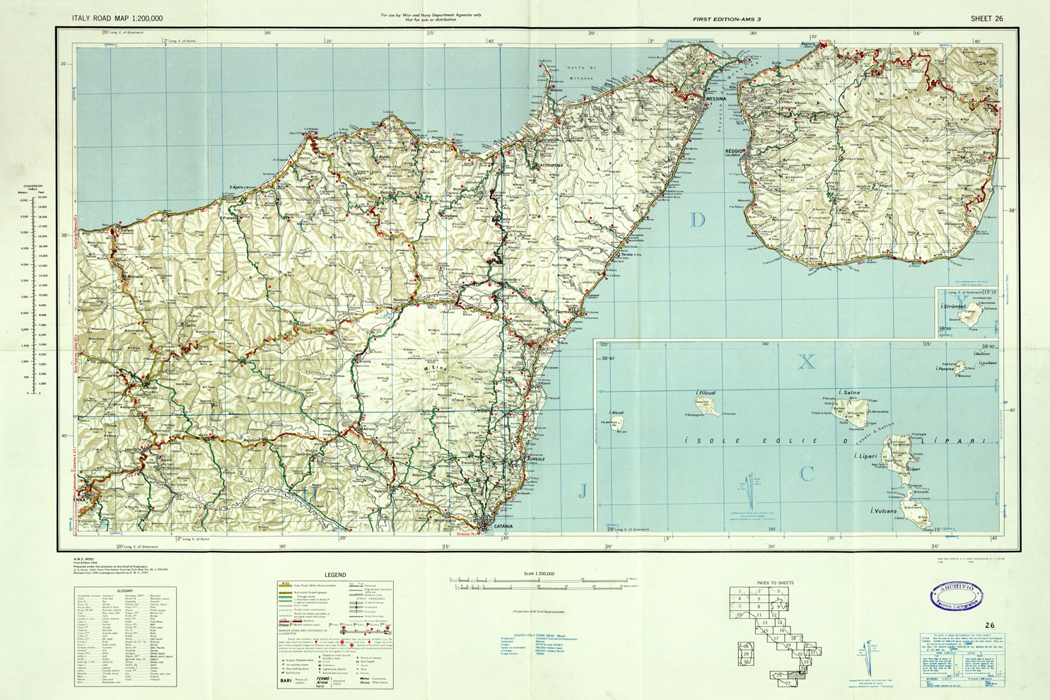 "Carta edita dall' Army Map Service Statunitense sulla base della Carta d' Italia al 200.000 del Touring Club Italiano."