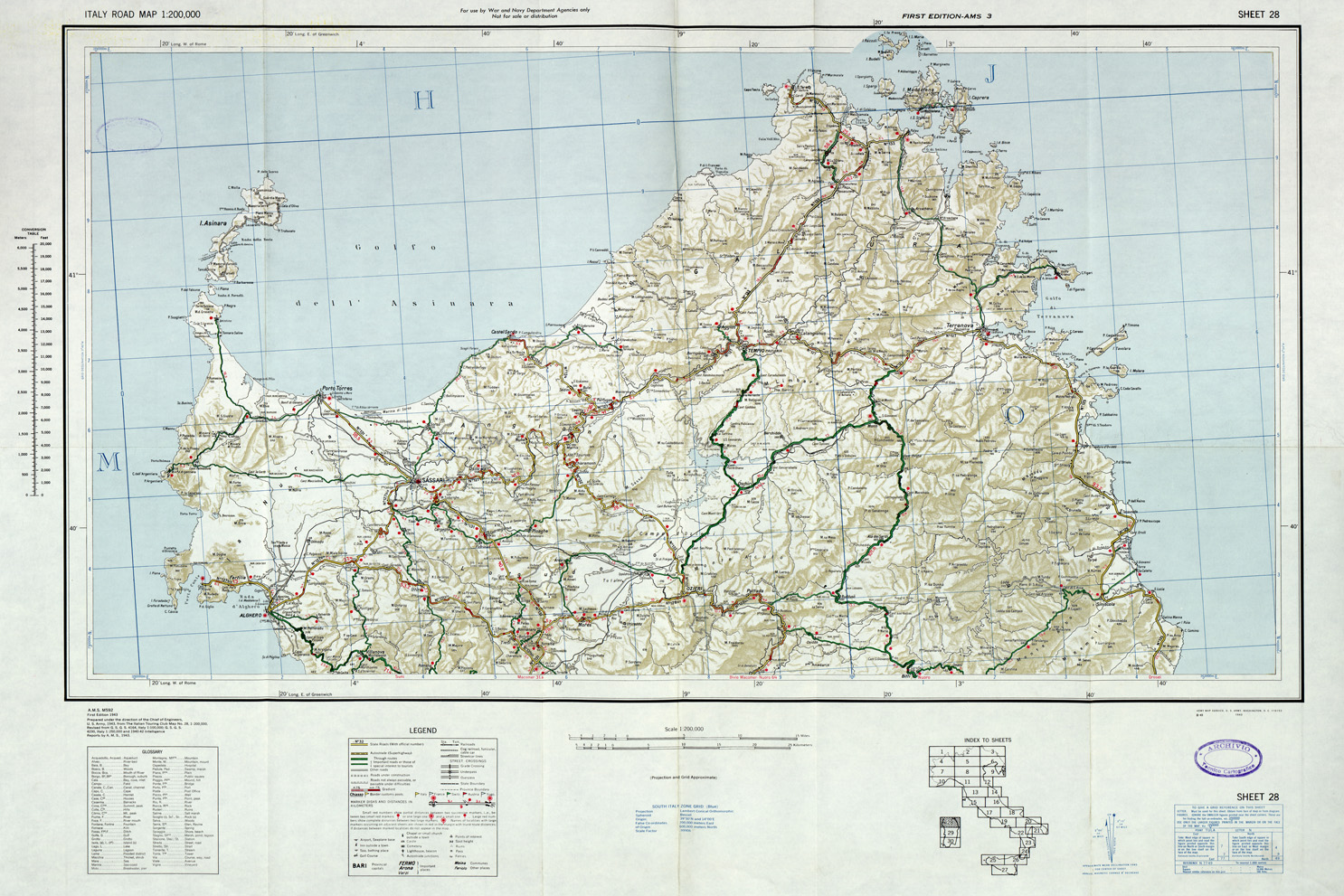 "Carta edita dall' Army Map Service Statunitense sulla base della Carta d' Italia al 200.000 del Touring Club Italiano."