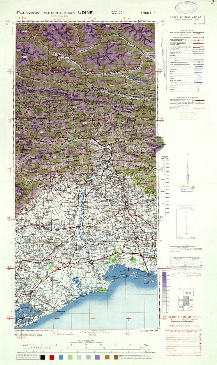 "Edizione aeronautica edita dal War Office Inglese sulla base della Carta d' Italia al 250.000 del Touring Club Italiano."