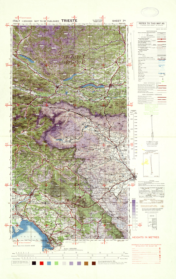 "Edizione aeronautica edita dal War Office Inglese sulla base della Carta d' Italia al 250.000 del Touring Club Italiano."