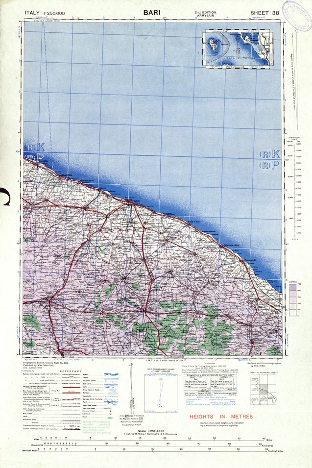 "Edizione aeronautica edita dal War Office Inglese sulla base della Carta d' Italia al 250.000 del Touring Club Italiano."