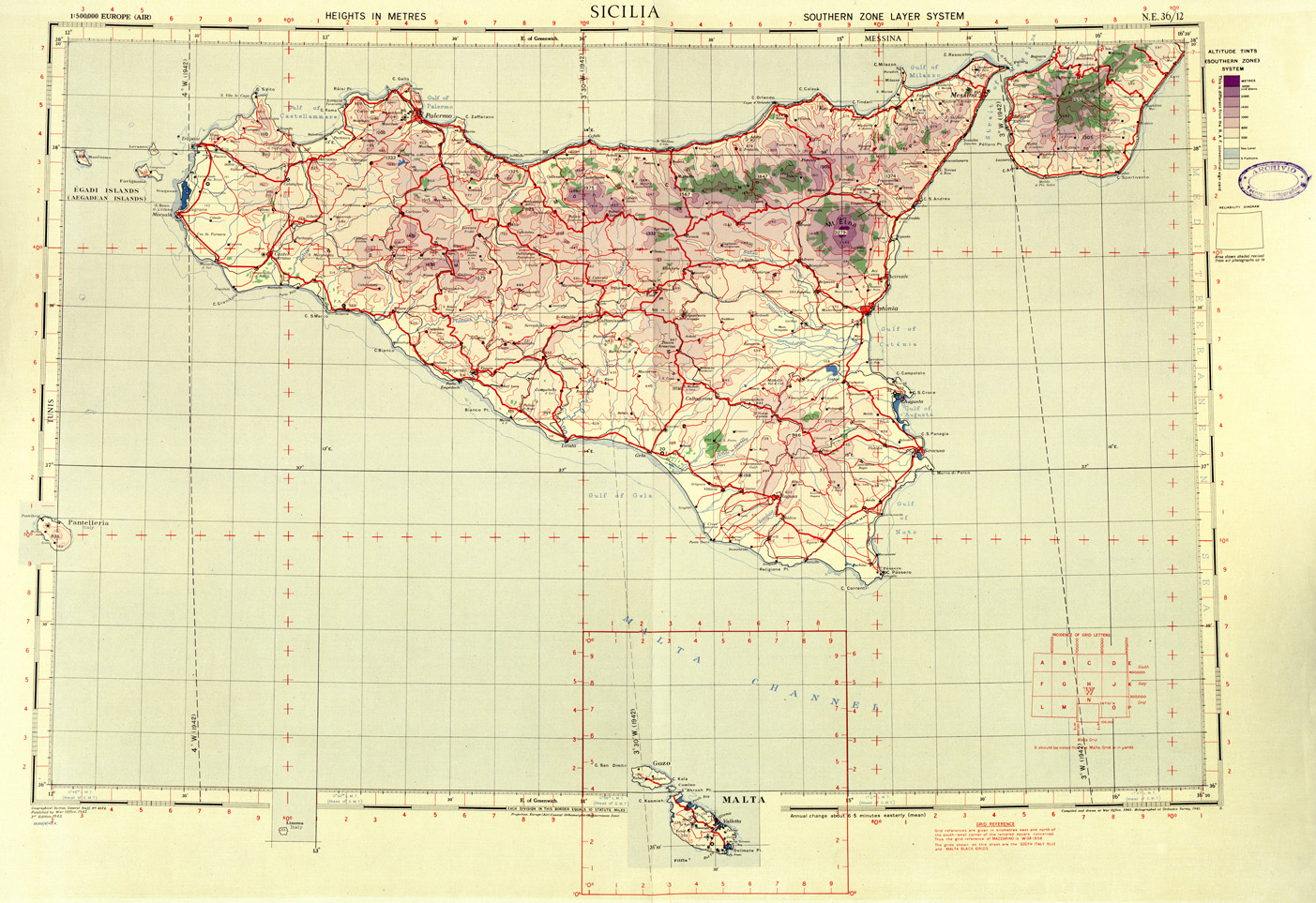 EUROPA CARTA AERONAUTICA INGLESE FOGLIO N E 36/12 SICILIA