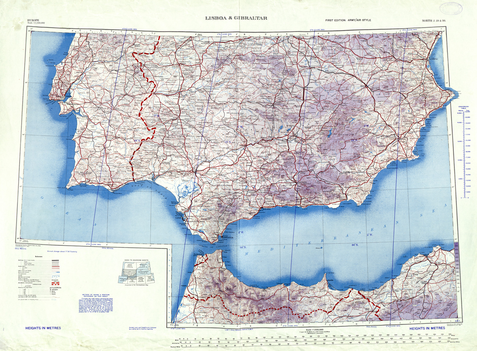EUROPA CARTA AERONAUTICA INGLESE FOGLIO NORTH J 29 E 30 LISBOA E GIBRALTAR