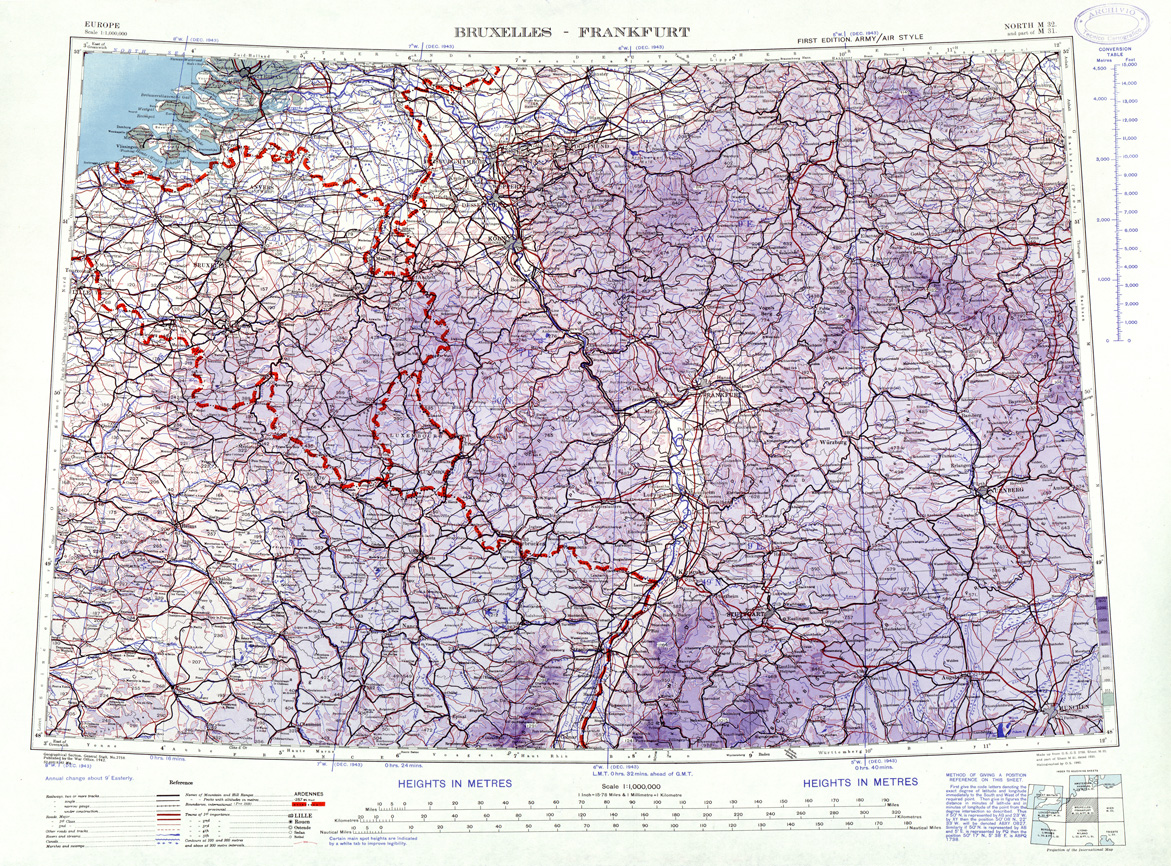 EUROPA CARTA AERONAUTICA INGLESE FOGLIO NORTH M 32 E M 31 BRUXELLES FRANKFURT