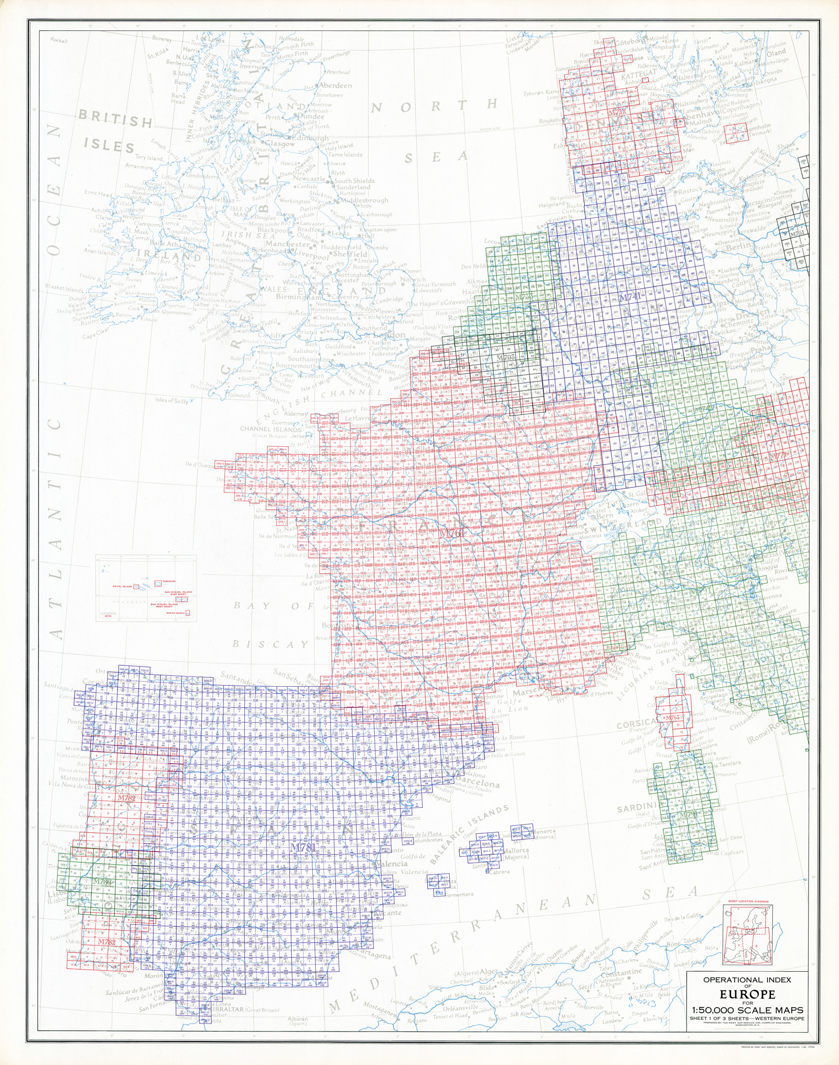 "Quadri d' unione per la cartografia d' Europa alla scala 1:50.000 Printed by the army map service,corps of engineers, Washington, D. C."