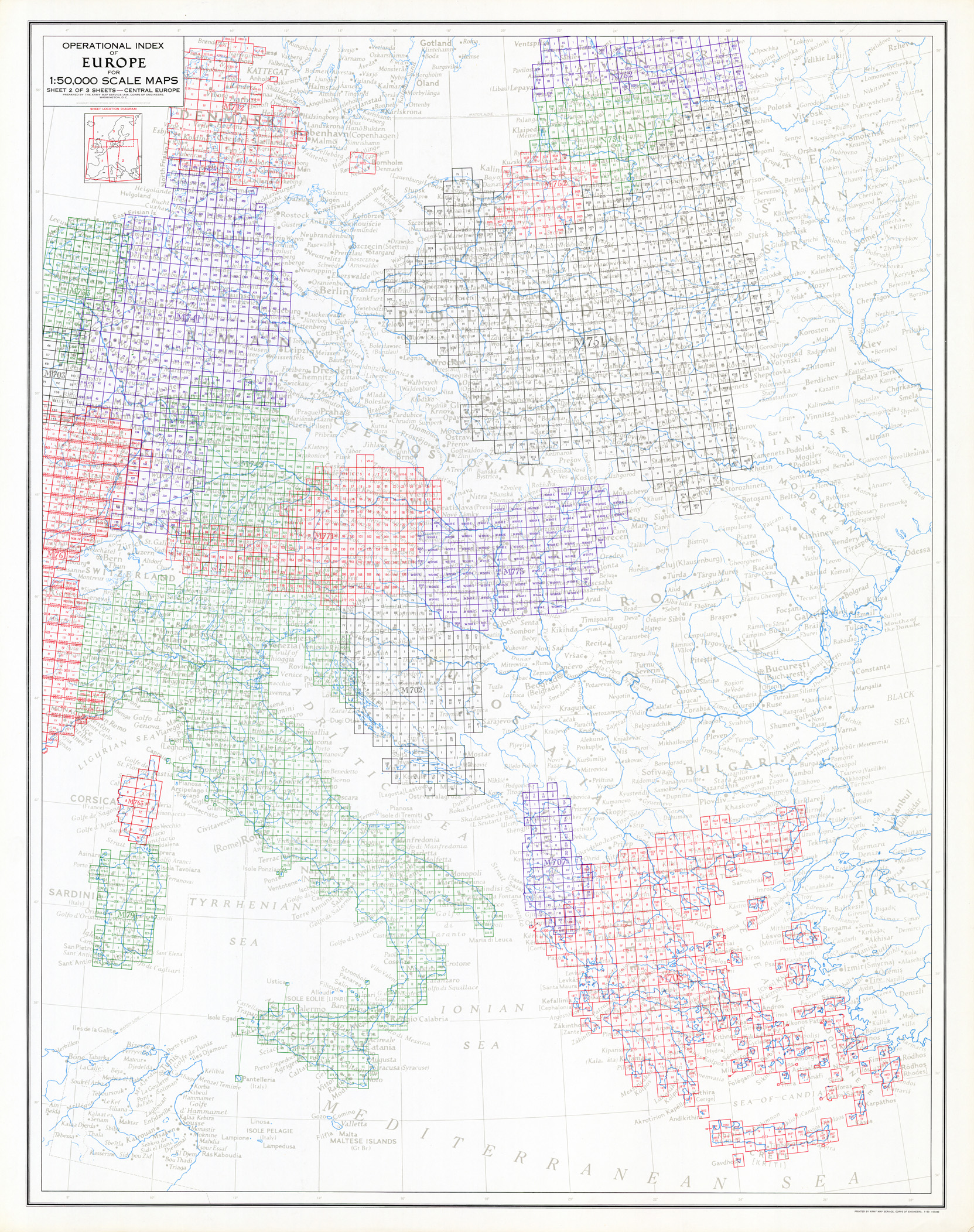 "Quadri d' unione per la cartografia d' Europa alla scala 1:50.000 by the army map service,corp of engineers, Washington, D. C."