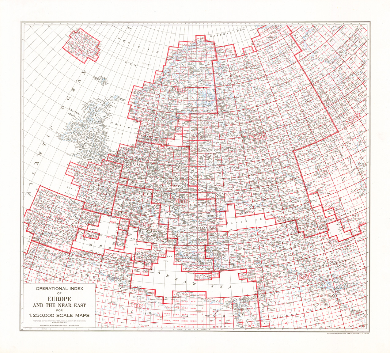 "Quadri d' unione per la cartografia d' Europa alla scala 1:250.000 Printed by the army map service,corps of engineers, Washington, D. C."