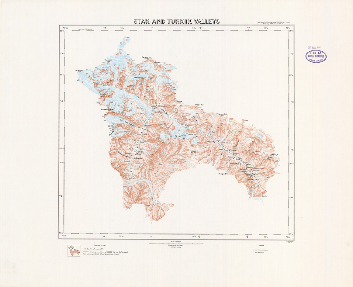 "Edizione Inglese dai rilievi eseguiti nel corso della spedizione scientifico - alpinistica Italiana al Karakorum 1953 - 1955"