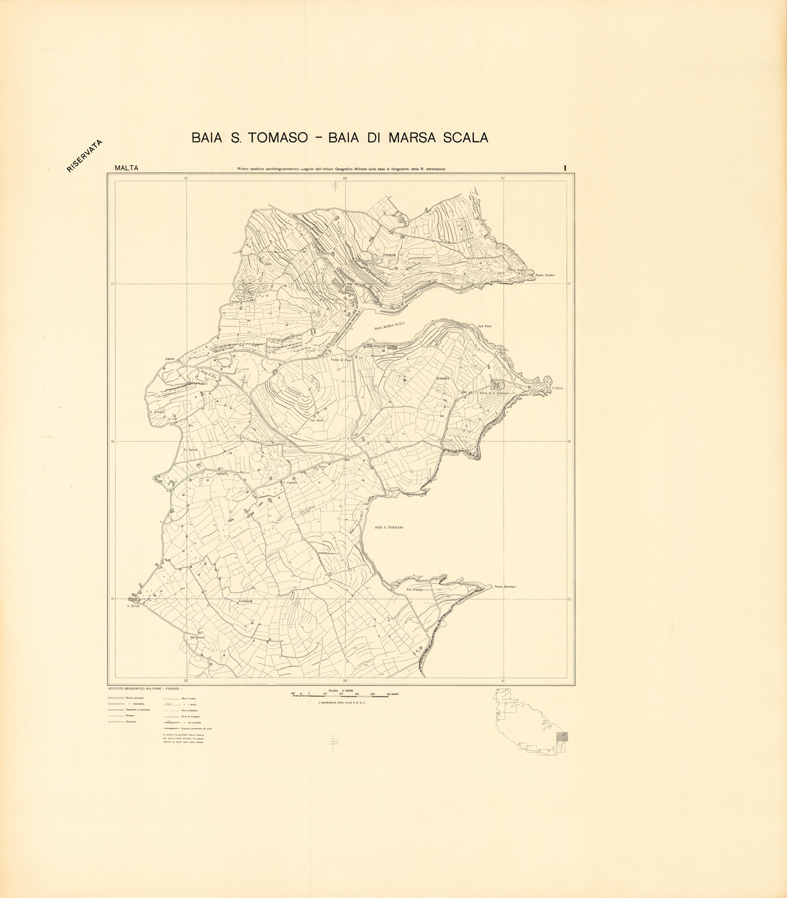 MALTA - FOGLIO I - BAIA S. TOMASO - BAIA DI MARSA SCALA - COPIE DI PROVA - PLANIMETRIA E ACQUE