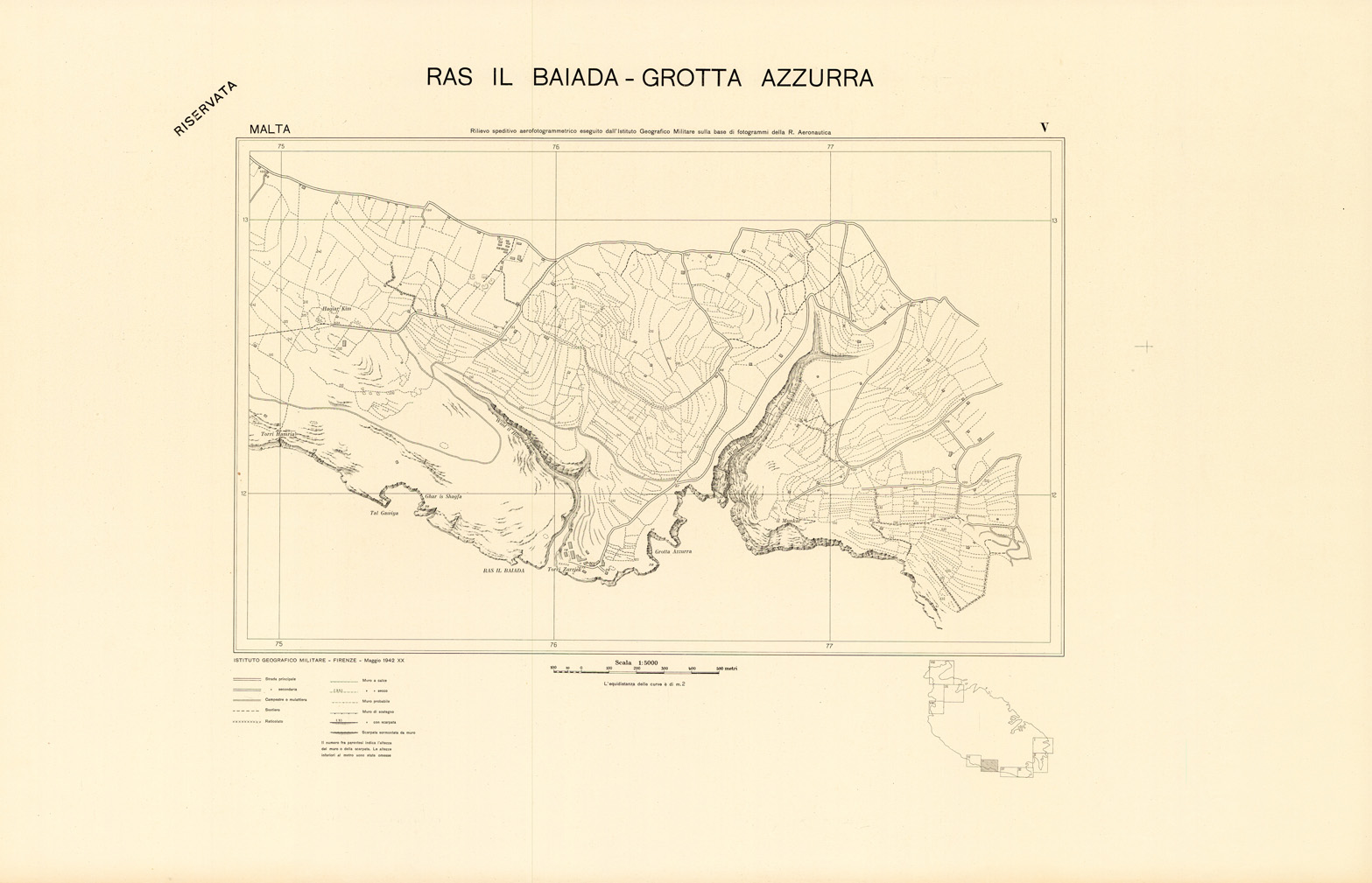 MALTA - FOGLIO V - RAS IL BAIADA - GROTTA AZZURRA - COPIE DI PROVA - PLANIMETRIA E ACQUE