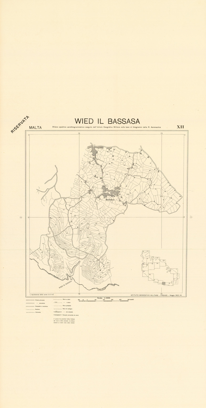 MALTA - FOGLIO XII - WIED IL BASSASA - COPIE DI PROVA - PLANIMETRIA E ACQUE