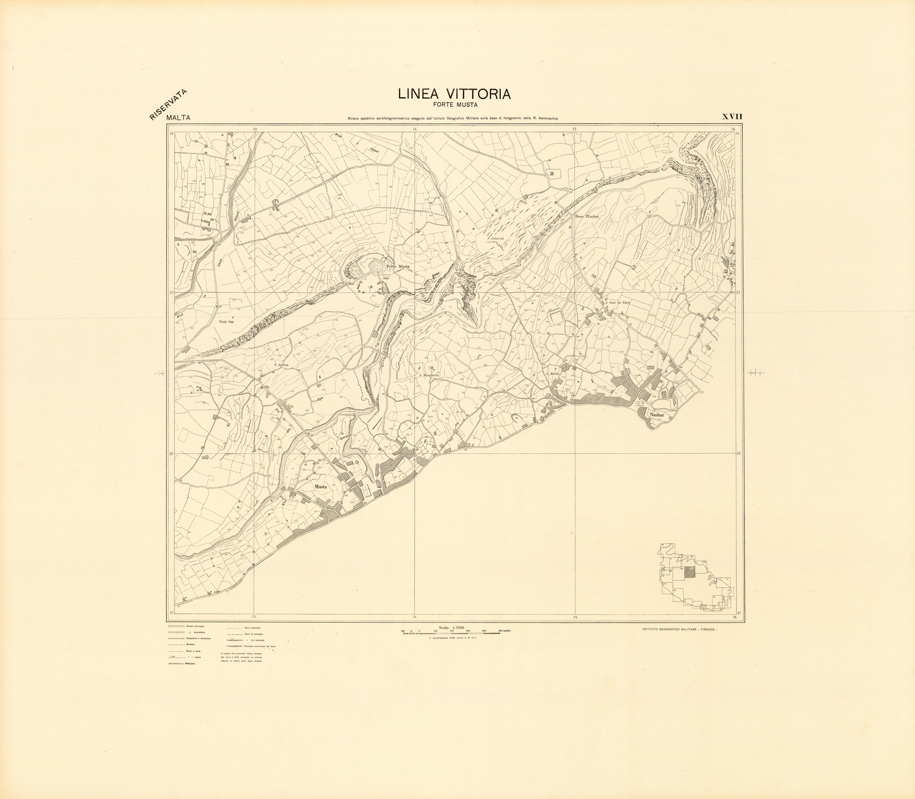 MALTA - FOGLIO XVII - LINEA VITTORIA FORTE MUSTA - COPIE DI PROVA - PLANIMETRIA E ACQUE
