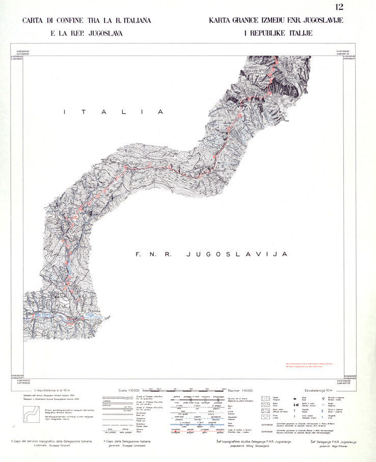 CONFINE DI STATO ITALO - JUGOSLAVO CARTOGRAFIA DELLA FASCIA CONFINARIA FOGLIO 12