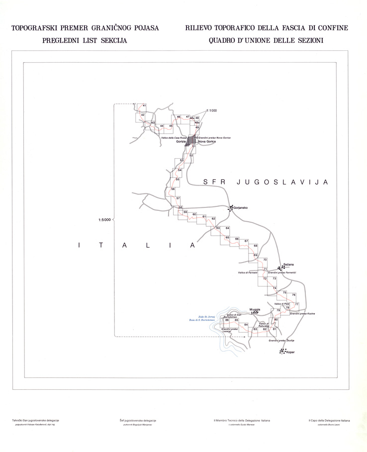 CONFINE DI STATO ITALO - JUGOSLAVO CARTOGRAFIA DELLA FASCIA CONFINARIA QUADRO D'UNIONE FOGLI 41 - 86