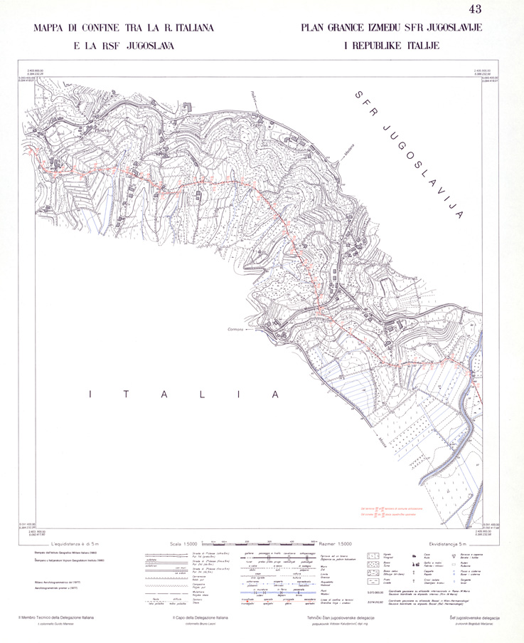 CONFINE DI STATO ITALO - JUGOSLAVO CARTOGRAFIA DELLA FASCIA CONFINARIA FOGLIO 43