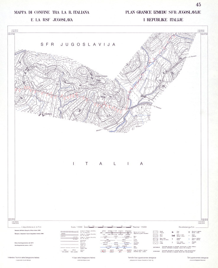 CONFINE DI STATO ITALO - JUGOSLAVO CARTOGRAFIA DELLA FASCIA CONFINARIA FOGLIO 45