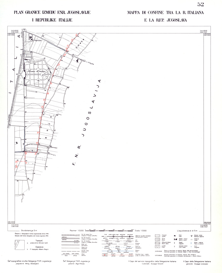 CONFINE DI STATO ITALO - JUGOSLAVO CARTOGRAFIA DELLA FASCIA CONFINARIA FOGLIO 52