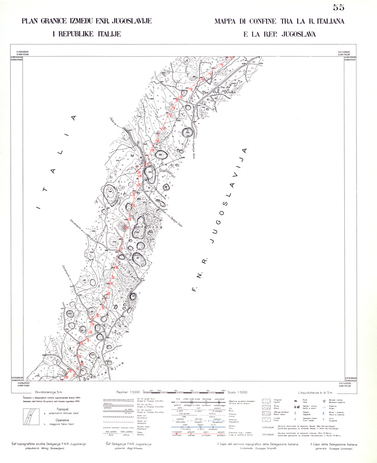 CONFINE DI STATO ITALO - JUGOSLAVO CARTOGRAFIA DELLA FASCIA CONFINARIA FOGLIO 55