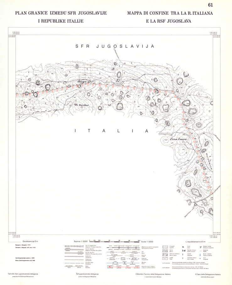 CONFINE DI STATO ITALO - JUGOSLAVO CARTOGRAFIA DELLA FASCIA CONFINARIA FOGLIO 61