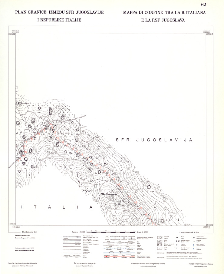 CONFINE DI STATO ITALO - JUGOSLAVO CARTOGRAFIA DELLA FASCIA CONFINARIA FOGLIO 62