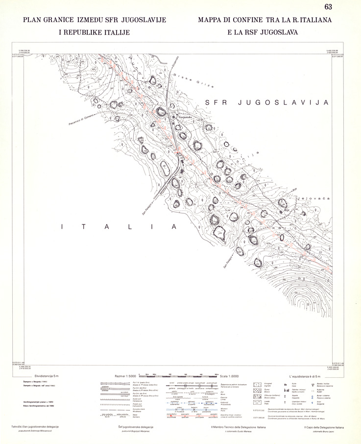 CONFINE DI STATO ITALO - JUGOSLAVO CARTOGRAFIA DELLA FASCIA CONFINARIA FOGLIO 63