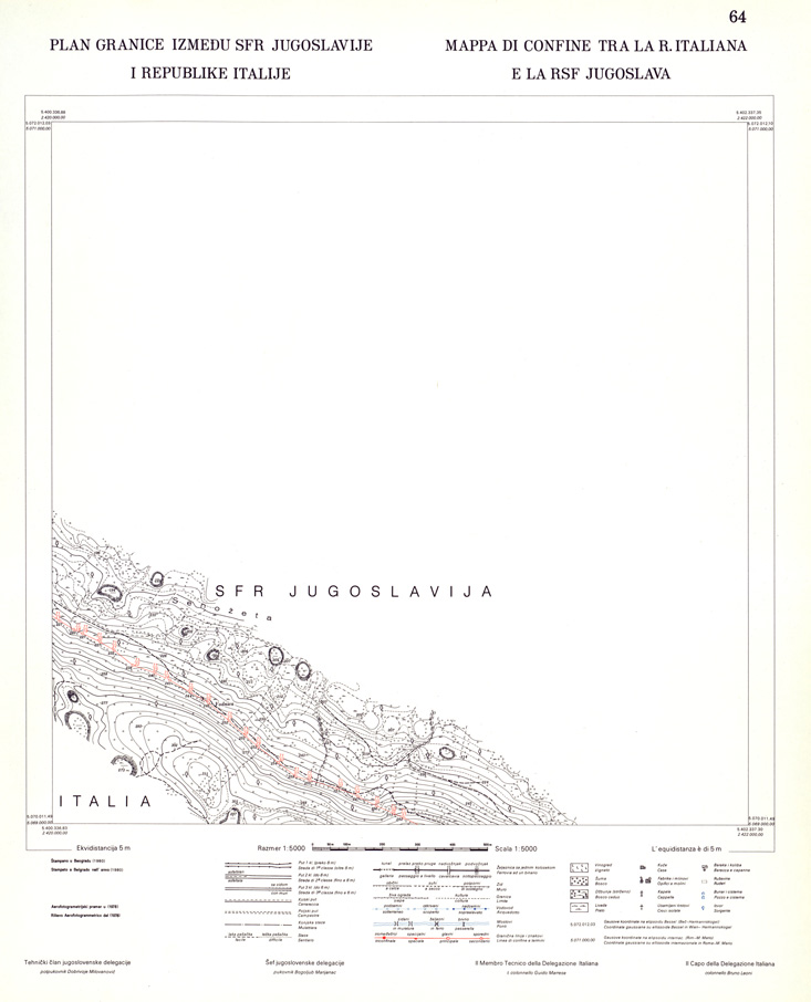 CONFINE DI STATO ITALO - JUGOSLAVO CARTOGRAFIA DELLA FASCIA CONFINARIA FOGLIO 64
