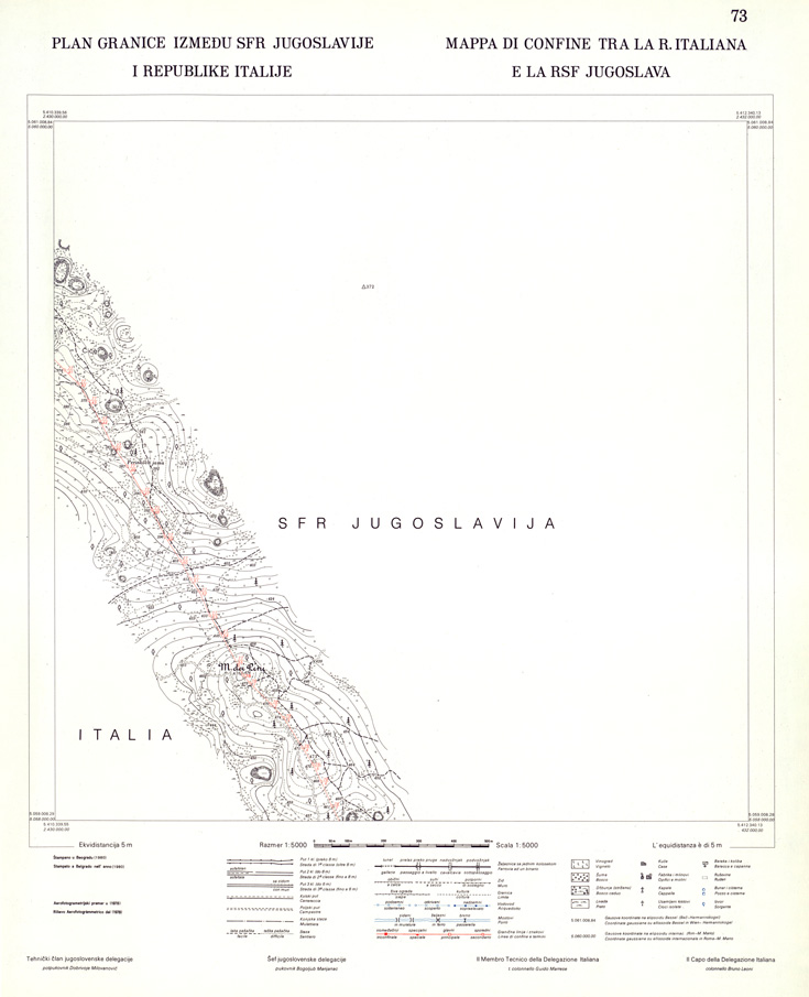CONFINE DI STATO ITALO - JUGOSLAVO CARTOGRAFIA DELLA FASCIA CONFINARIA FOGLIO 73