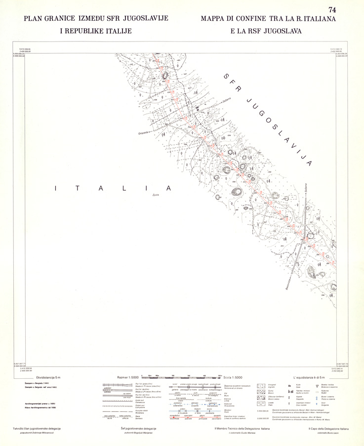 CONFINE DI STATO ITALO - JUGOSLAVO CARTOGRAFIA DELLA FASCIA CONFINARIA FOGLIO 74