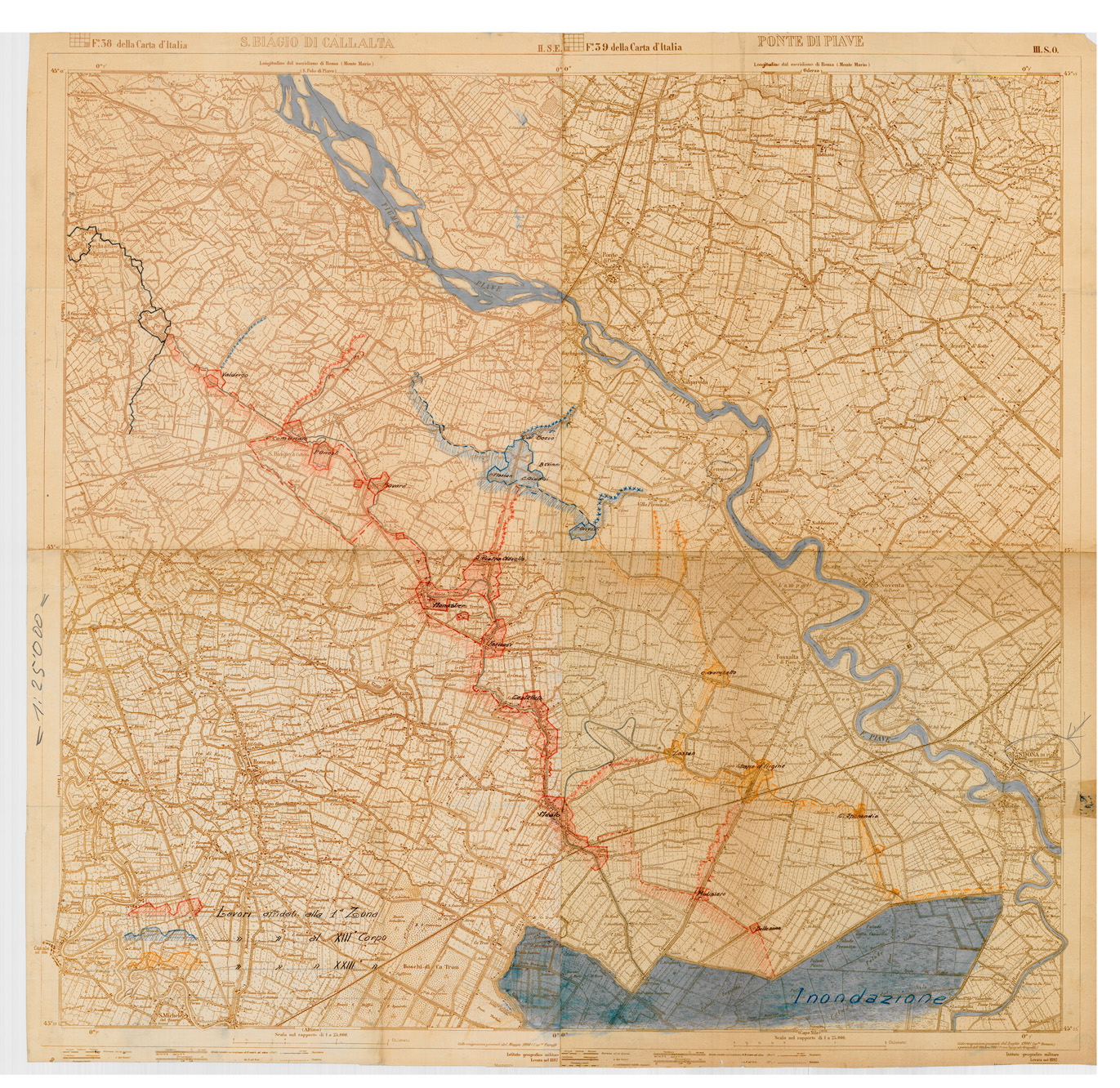 "PROPRIETA' MUSEO STORICO III ARMATA (PADOVA) FOGLI: 38 II SE SAN BIAGIO DI CALLALTA 39 III SO PONTE DI PIAVE 52 IV NO S. DONA' DI PIAVE 51 I NE RONCADE"