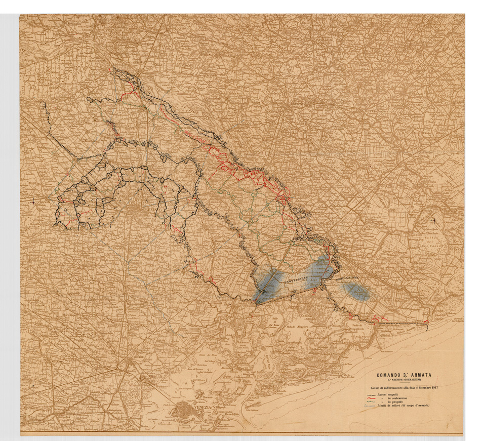 "PROPRIETA' MUSEO STORICO III ARMATA (PADOVA) Evidenziate zone degli allagamentidel 5/12/1917"