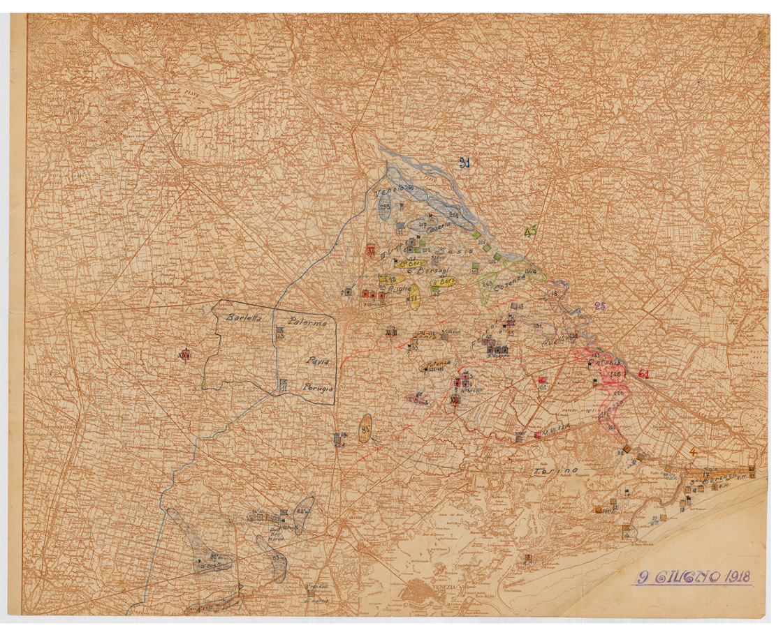 "PROPRIETA' MUSEO STORICO III ARMATA (PADOVA) Dislocazione del fronte alla data del 9/6/1918 (vedi retro)"