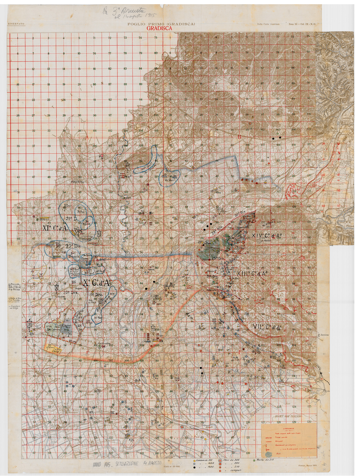 "PROPRIETA' MUSEO STORICO III ARMATA (PADOVA) Situazione di tutta la 3° alla data del 14/8/1915"