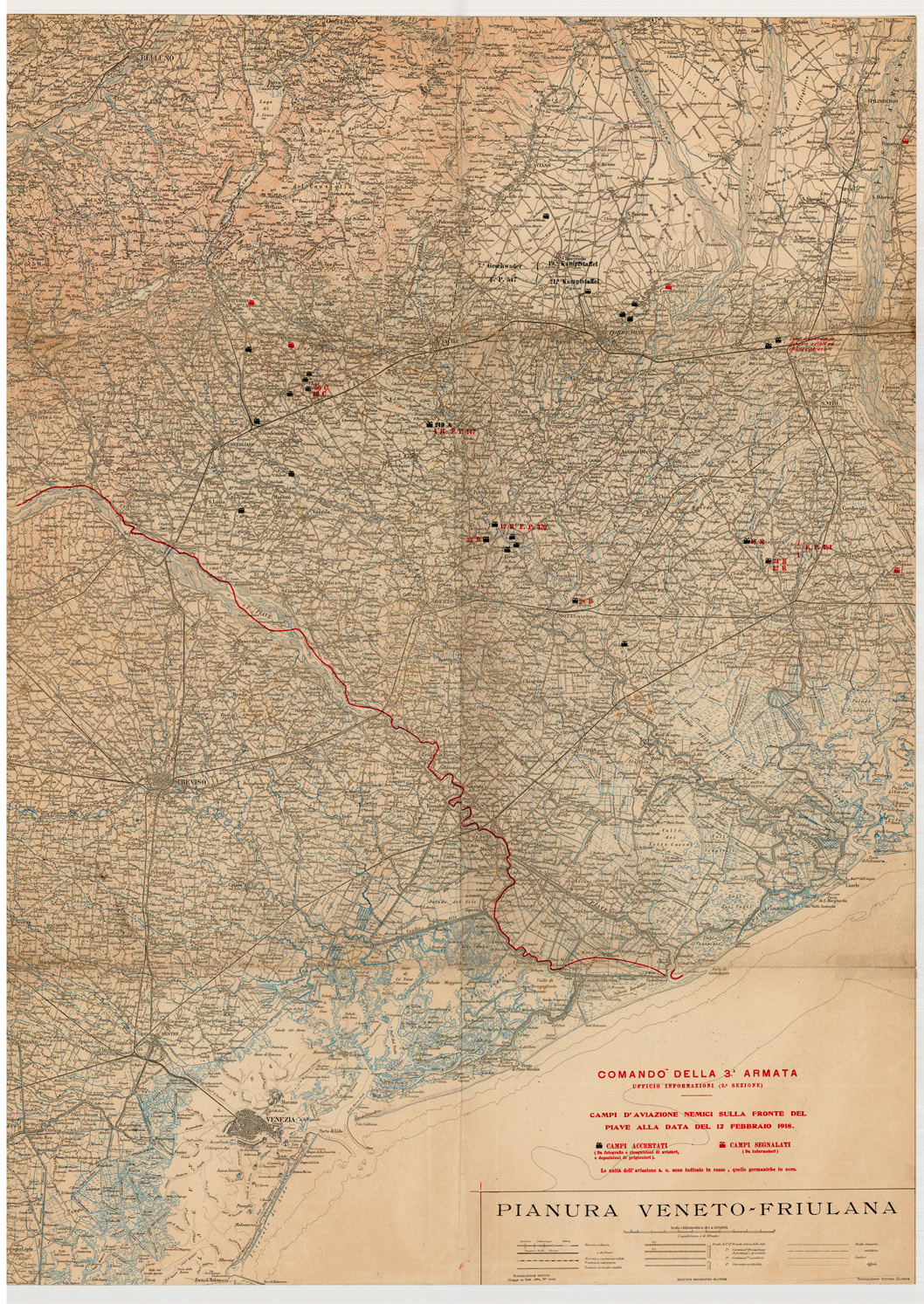 "PROPRIETA' MUSEO STORICO III ARMATA (PADOVA) Campi d'aviazione nemici sul fronte del piave alla data del 12/2/1918 "