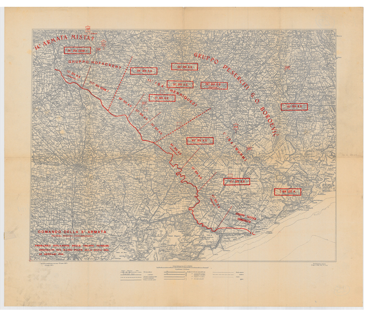 "PROPRIETA' MUSEO STORICO III ARMATA (PADOVA) Probabile situazione delle truppe nemiche dislocate sul basso piave alla data del 12/1/1918"