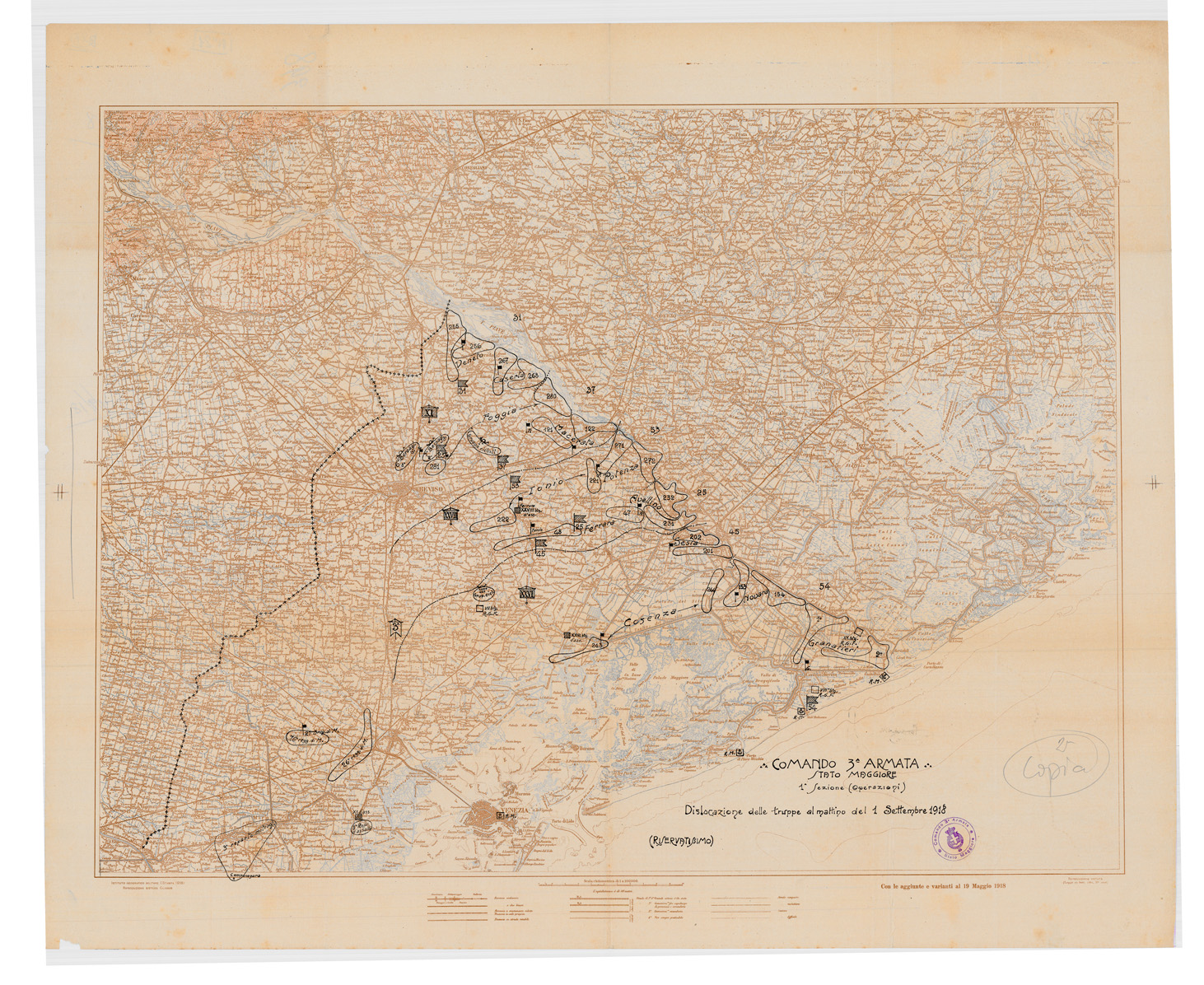 "PROPRIETA' MUSEO STORICO III ARMATA (PADOVA) Dislocazione delle truppe alla mattino del 1° settembre 1918"