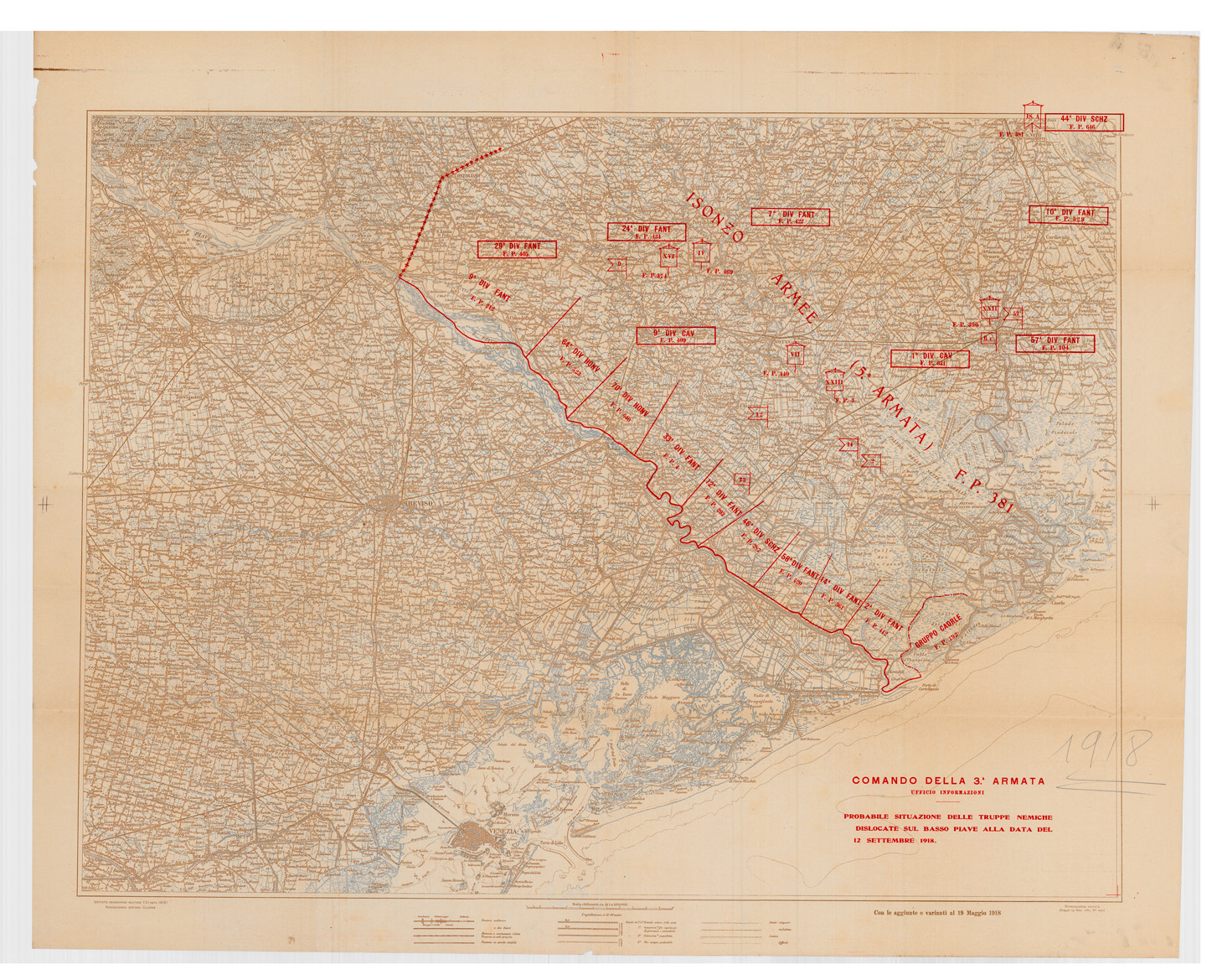 "PROPRIETA' MUSEO STORICO III ARMATA (PADOVA) Probabile situazione delle truppe nemiche dislocate sul basso piave alla data del 12 settembre 1918"