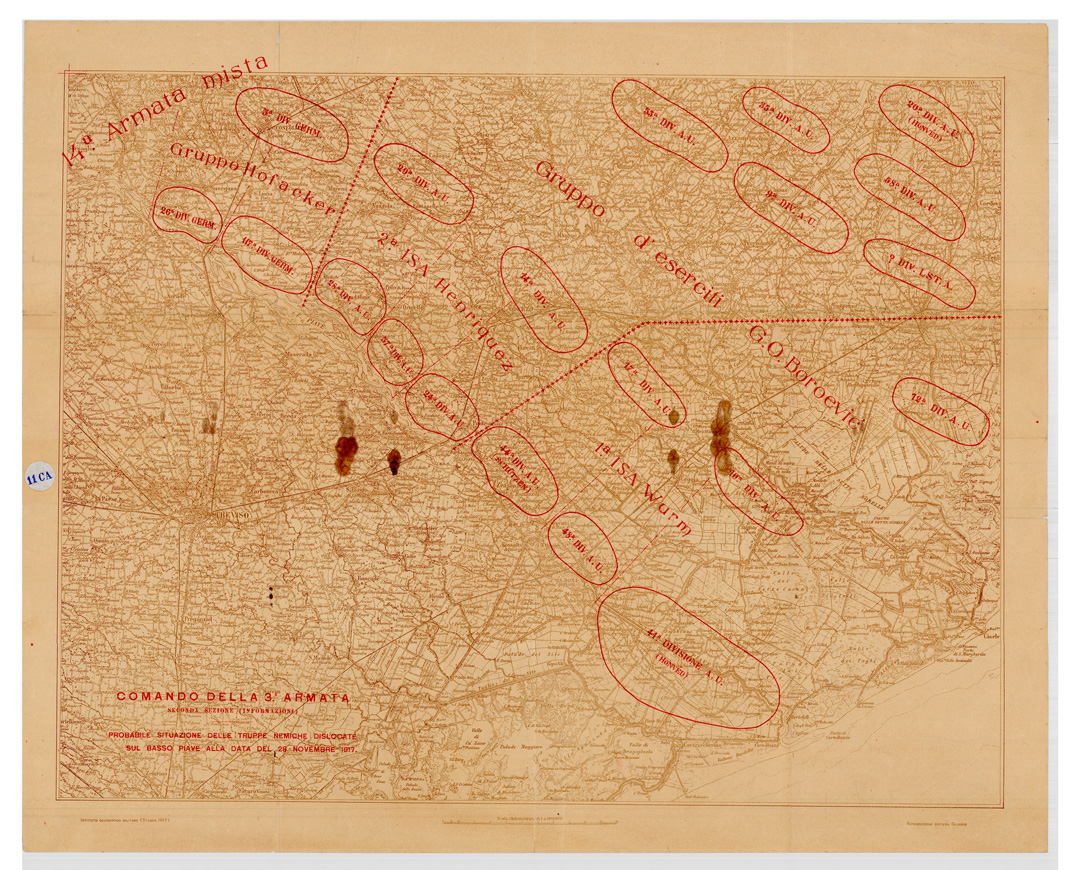 "PROPRIETA' MUSEO STORICO III ARMATA (PADOVA) Probabile situazione delle truppe nemiche dislocate sul basso piave alla data del 28 novembre 1917"