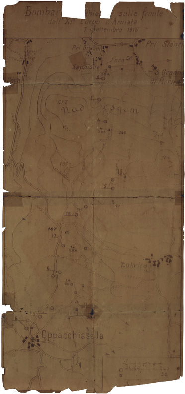 "PROPRIETA' MUSEO STORICO III ARMATA (PADOVA) Bombardamenti sul fronte dell' XI Corpo d'Armata al 7/9/1916"