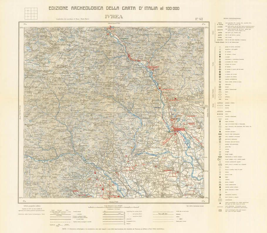 EDIZIONE ARCHEOLOGICA DELLA CARTA D'ITALIA FOGLIO 042 IVREA