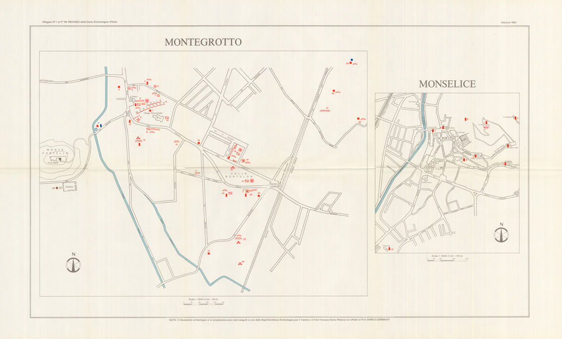 EDIZIONE ARCHEOLOGICA DELLA CARTA D'ITALIA ALLEGATO 1 AL FOGLIO 064 (ROVIGO) MONTEGROTTO - MONSELICE