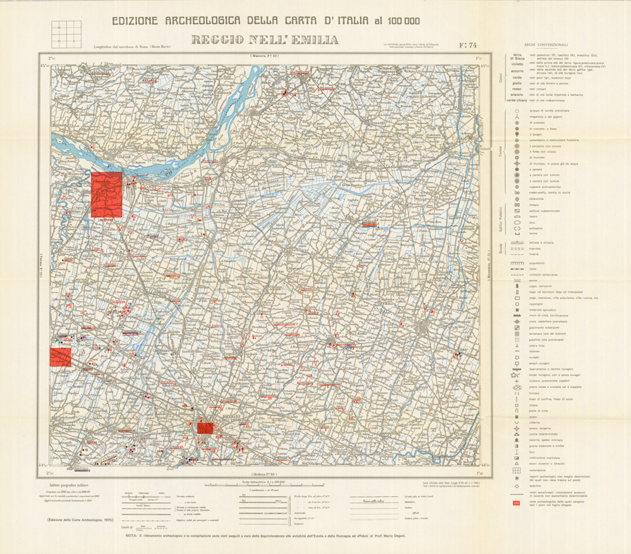 EDIZIONE ARCHEOLOGICA DELLA CARTA D'ITALIA FOGLIO 074 REGGIO NELL' EMILIA