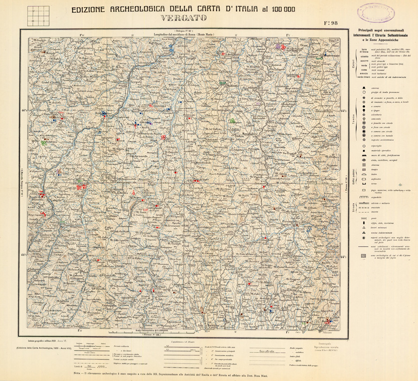 EDIZIONE ARCHEOLOGICA DELLA CARTA D'ITALIA FOGLIO 098 VERGATO