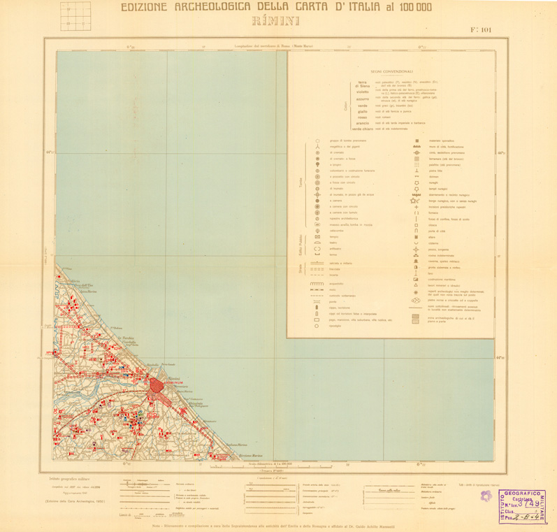 EDIZIONE ARCHEOLOGICA DELLA CARTA D'ITALIA FOGLIO 101 RIMINI