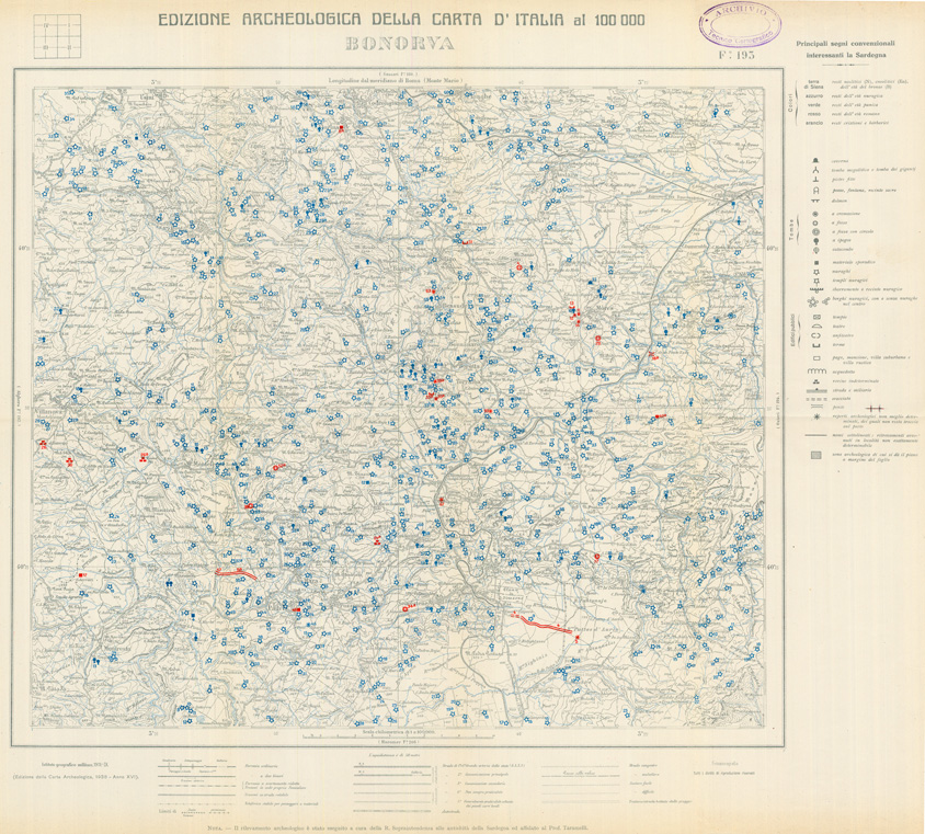 EDIZIONE ARCHEOLOGICA DELLA CARTA D'ITALIA FOGLIO 193 BONORVA