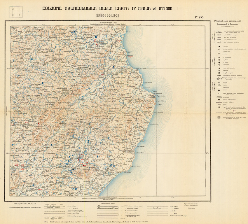 EDIZIONE ARCHEOLOGICA DELLA CARTA D'ITALIA FOGLIO 195 OROSEI