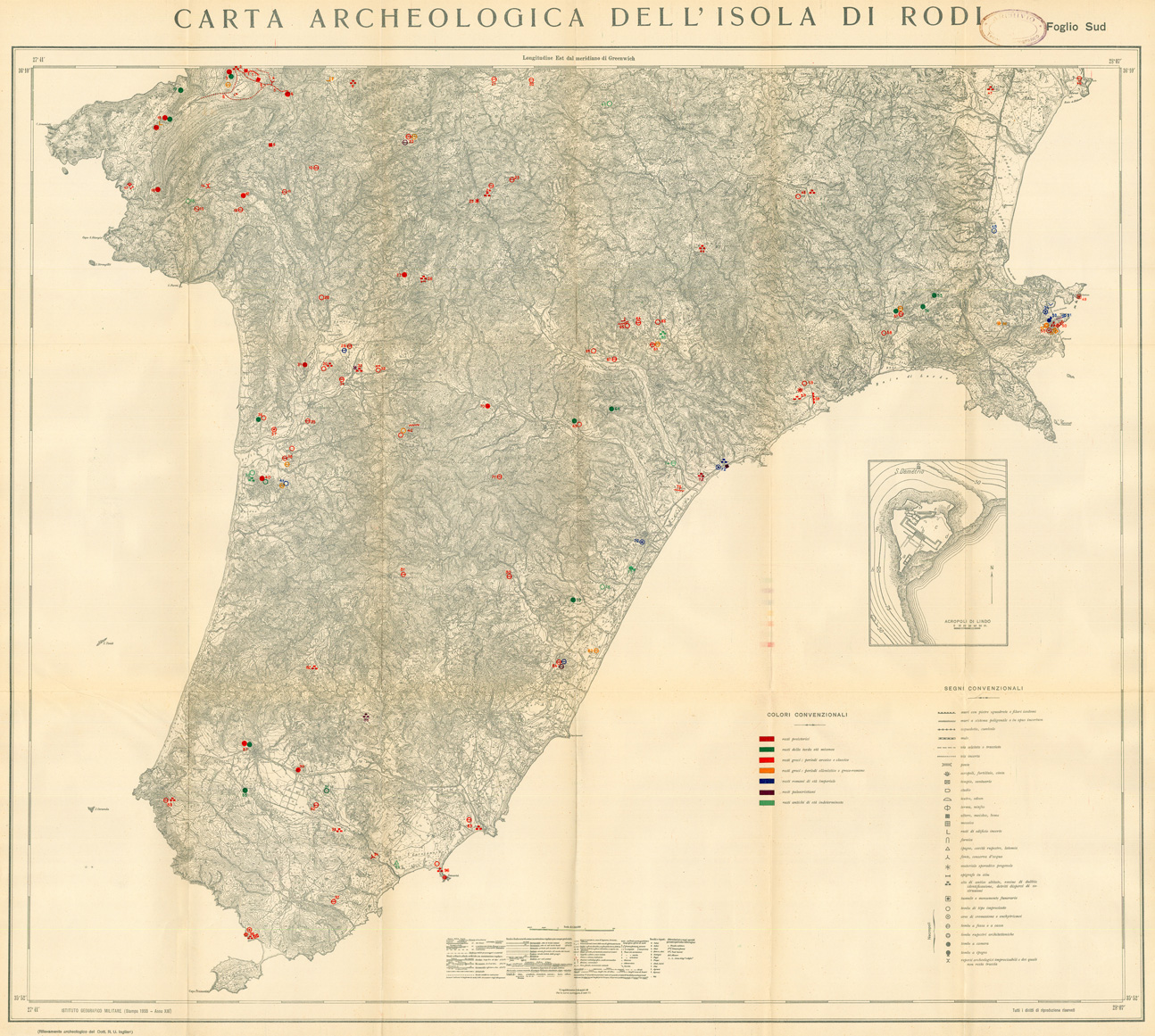 CARTA ARCHEOLOGICA DELL' ISOLA DI RODI FOGLIO SUD