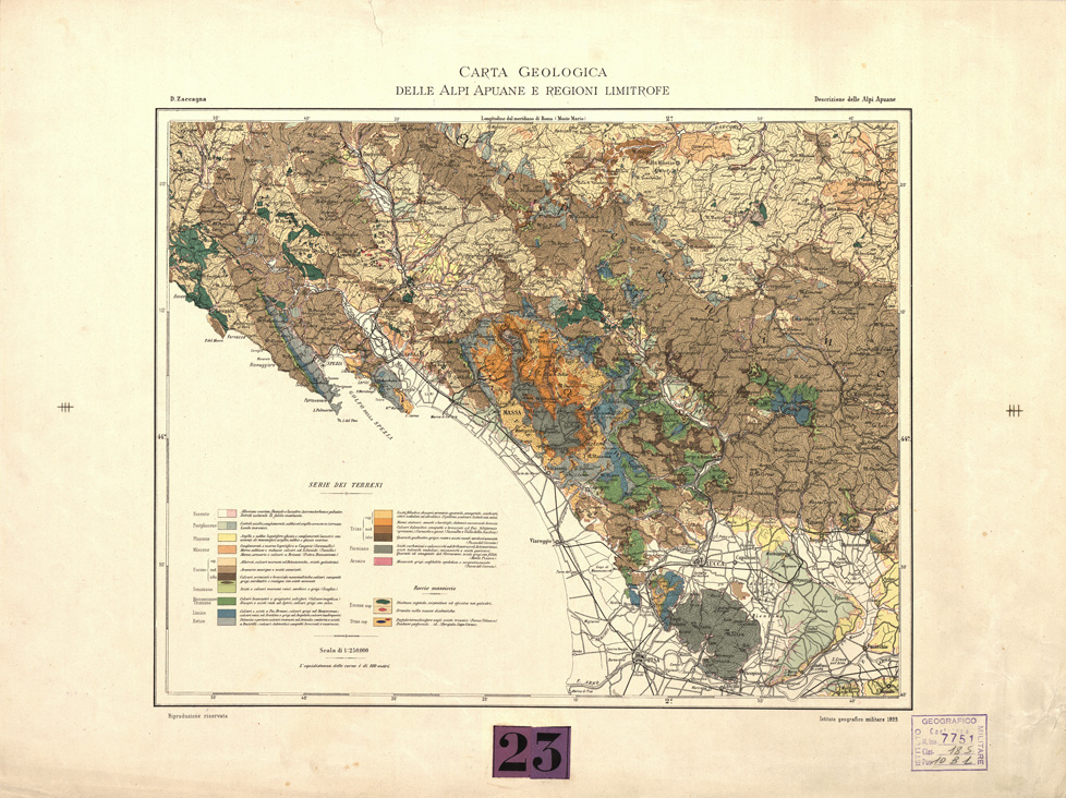 CARTA GEOLOGICA DELLE ALPI APUANE E REGIONI LIMITROFE D.ZACCAGNA. I.G.M. 1899.