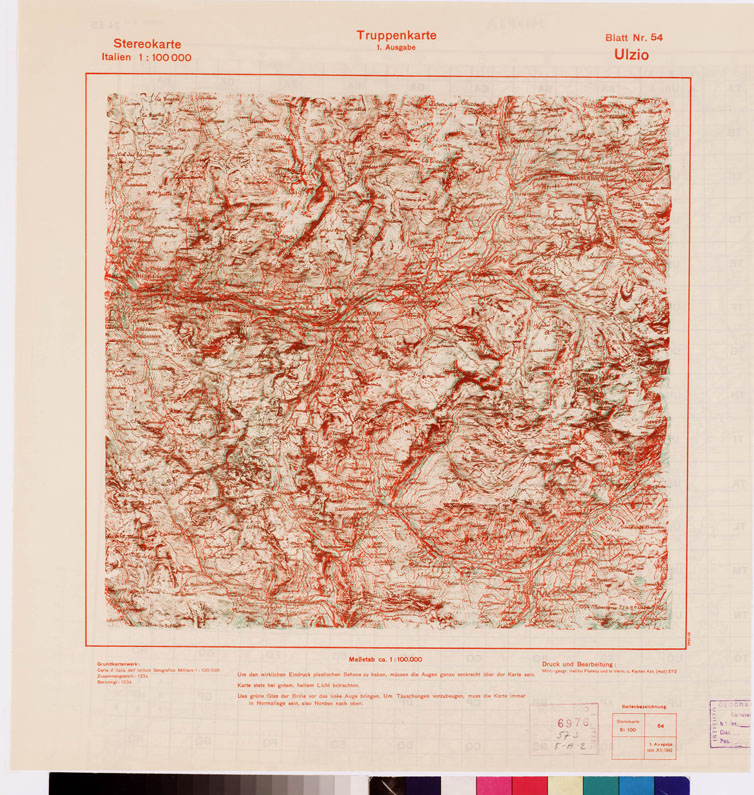 TRUPPENKARTE - STEREOKARTE - (CARTA STEREOSCOPICA PER USO MILITARE) - Foglio 54 - Ulzio